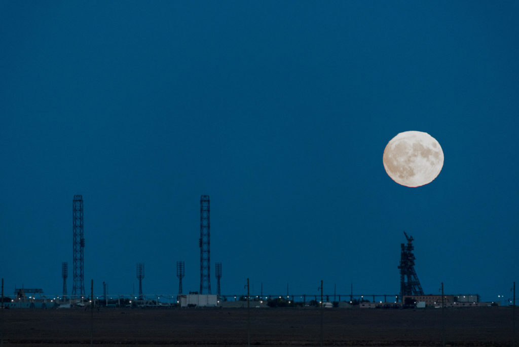 The launch crew for the EUTELSAT 5 West B / Mission Extension Vehicle-1 mission had a spectacular view of the full moon at the Baikonur Cosmodrome Friday night / Saturday morning as the passed by Launch Pad 39 at the Cosmodrome.